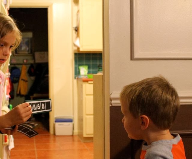 My third grade daughter working with her three-year-old brother on five frames.