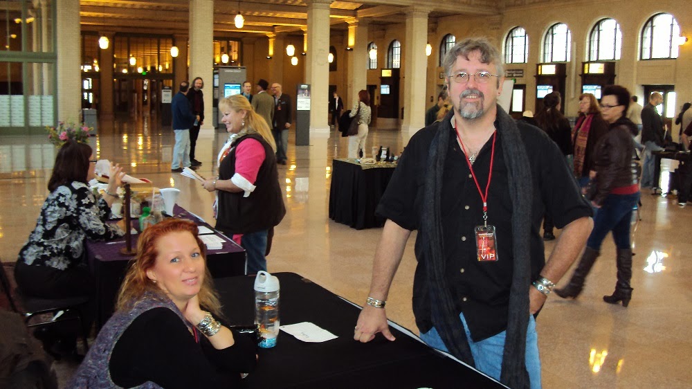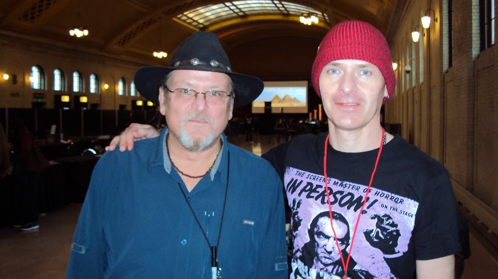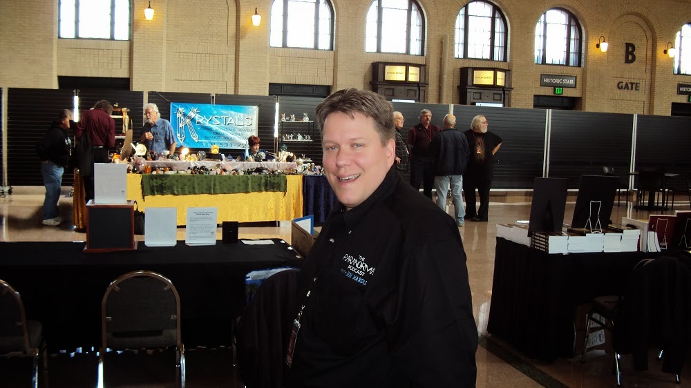 A few photos from this year's Minneapolis-based Paradigm Symposium which I got back from late last night: (a) David Weatherly and his wife, Teresa; (b) Paranormal Podcast host, Jim Harold; (c) me and Chris O'Brien; (d) A symposium shot; (e) a weird sign (for a tornado shelter which me and David Weatherly tried to get into but couldn't...); (f) an intrusive security camera right above my table (and since I hate security cameras I took a shot of it with one hand while shooting it the finger with the other hand); and (g) goofing off.