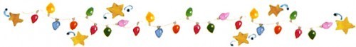 Here’s this year’s version of the Christmas banner Janie made for us, Christmas trees on candy striped string!