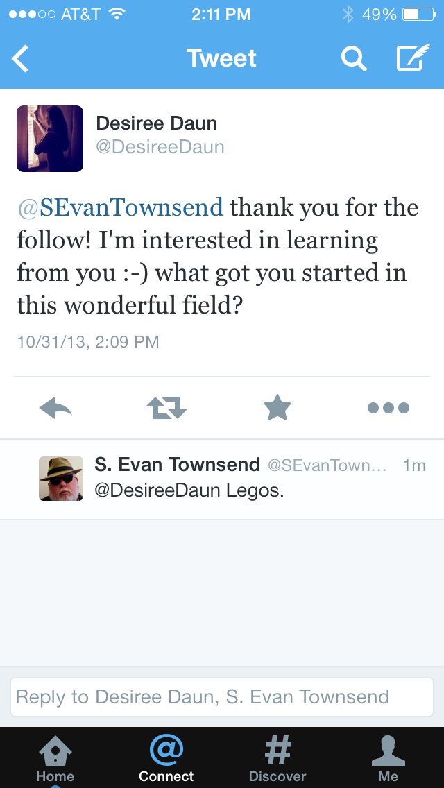 I don't believe I have ever told, here at least, the story of how and why I became a writer. And doing so was inspired by a tweet I received on my Twitter account (see picture at left). I was asked "what got you started in this wonderful field?" and I replied "Legos." Which while both true and accurate, is not the complete story.In circa 1966 I received a set of Legos for Christmas. It was a pretty extensive set for the time, with wheels and lots of blocks and different pieces. At that time they did not give you instructions (at least I don't remember any). Now they have a picture on the box of what you're supposed to make and instructions. I think that's just stupid.