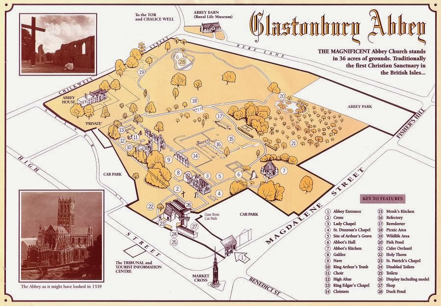 Let me go back to Muirwood for a moment. I knew the main character, Lia, was a scullion abandoned at an Abbey kitchen. I began searching Google for medieval kitchens to help inspire me. I found a striking image of the Abbot’s kitchen at Glastonbury Abbey in England. I even went so far as to e-mail the groundskeeper and ask for pictures from the inside, which he generously e-mailed to me. On the Abbey’s website, I found an image of the grounds: