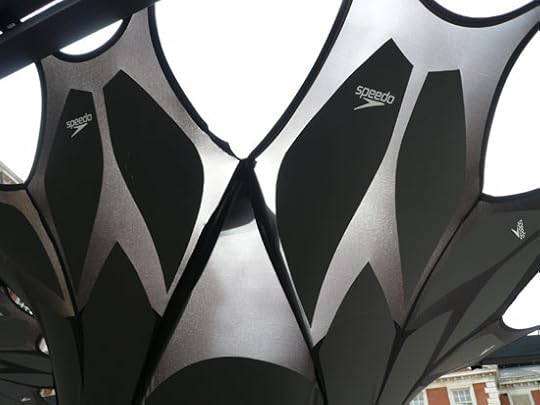 Designboom has got a nifty little post on a project by some platform 2 students from the Chelsea College of Art & Design. The s_pavilion is an external structure made from LZR Racers, those Speedo wetsuits that gave Michael Phelps his edge at the Beijing Olympics, and Flavia Zocarri the bum's rush a month earlier.