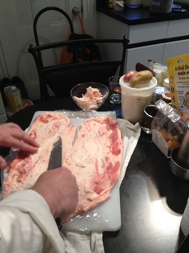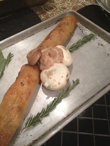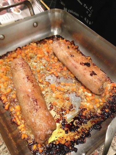 The roulade in its final cooking stage. (Next time we'll have a sous vide rig to do the earlier cook step in... Muahaha)