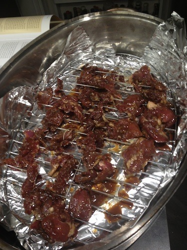 "Char siu" marinated duck pieces to roast and make dumpling filling from.