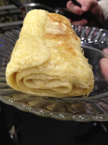 The prep cooking begins over a week before, when corwin began making stock out of all the duck carcasses and bones saved in the freezer from last year, as well as rendering all the fat from the skins that had been reserved. He also did a ton of shopping. This year’s meal required trips to the Wine & Cheese Cask, H-Mart (the Korean super-grocery), Mayflower Poultry (the “Live Poultry Fresh Killed” place), New Deal Fish Market, Ebisuya Market, Formaggio, and Whole Foods, but a surprisingly large amount of the meal came from our farm shares and our now extremely well-stocked pantry, root cellar, and freezer(s). Two items did have to be ordered from Amazon, though, when we could not find them locally in any Asian groceries! (Wheat starch and a tamago-making pan.)
