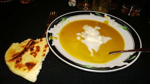 I made this recipe up by interpolating dal soup recipes on the Internet. Many call for black or red dal. What I had in the pantry was white dal, so I did my test recipe a few weeks back with that, and it was so good, I decided to stick with it. I started with this recipe from Food.com but modified it quite a bit. To activate the spices in Indian food you nearly always want to sauteed them in oil. So I sauteed turmeric, cayenne, cumin, and cardamom with garlic, two finely chopped carrots and a finely chopped large yellow onion. Once everything was soft and beginning to caramelize a little, I added the lentils, a handful of curry leaves, and vegetable stock we’d made from celery, carrots, onions, and random greens we’d been saving in the freezer. (When your farm share gives you more organic veggies than you can eat, you end up freezing a lot of stuff.) The lentils were the Indian kind that have no skins on them when you buy them. Simmer an hour at least. Once everything is pretty much mush, puree until velvet smooth with an immersion blender.