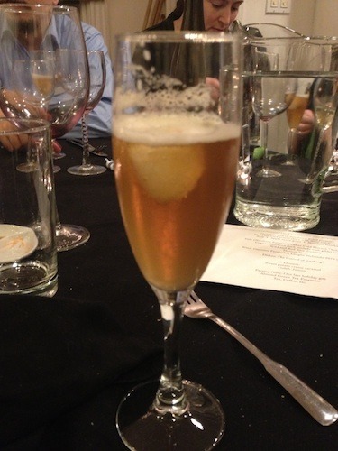 Now, wine pairing with Indian food is almost impossible. Wine just does not go with it. Beer and cocktails, though, go perfectly fine. Partly inspired by the paired cocktails we had when eating at 41 Degrees/41 Grados (the successor to Ferran Adria’s El Bulli), corwin cooked up (literally) what I deemed the “palate uncleanser.” (Traditionally we serve a palate cleanser cocktail at some point mid-meal. This would be the opposite, though.) It was warm rather than cold, and he made people guess what it was. Guesses ranged from eggnog to yogurt to milk. It was actually almond milk steeped with cardamom, turmeric, cinnamon stick, gloves, ginger, sugar, and Licor 43 (a vanilla liqueur). It was everything that we love about eggnog, but suitable for the lactose intolerant.