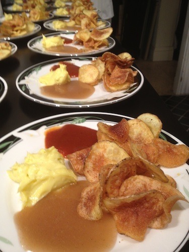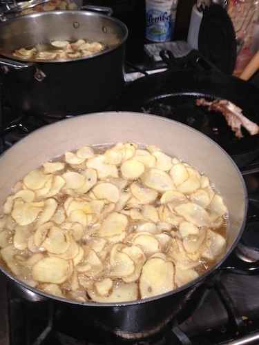 Potato chips ready to go to table. They look more "done" here than they actually were.