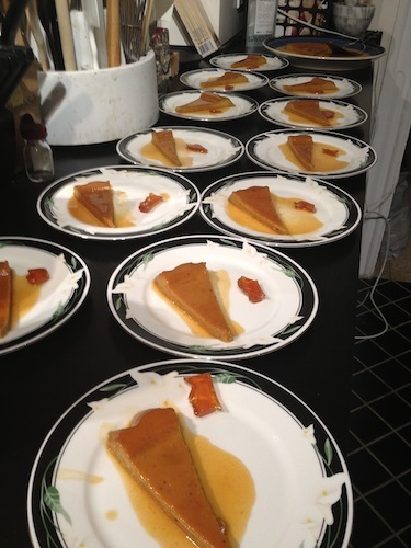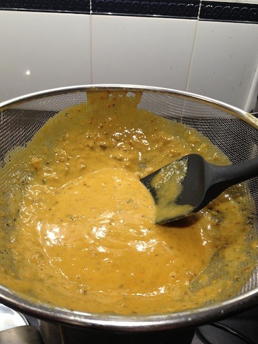 I tweeted this photo asking people to guess what it was. Closest guess was pumpkin ice cream! Sweet potato creme caramel being strained.