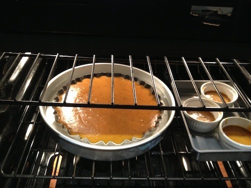 Sweet potato creme caramel was based on this recipe from Food 52, but I made some modifications. (Of course.) In particular I cut the cointreau to a third, and I roasted the sweet potatoes at 400. Remember what I said above about how they make their own caramel? If you only do them at 300 degrees for 30 minutes, like this recipe says, they don’t do that. I tried it and they were soft but unspectacular. I put them back in for another 20 minutes at 425 to get some great brown caramel leaking out of them. Yes, that results in some hardened dried bits of the edges of the potatoes, but that’s okay because this recipe is STRAINED. I also beat the eggs pretty thoroughly. The recipe says “lightly beaten.” Okay, so not until frothy, but you still have to get all the white and yolk mixed or I think it’ll turn out eggy. This did not turn out eggy. It turned out the best flan ever.