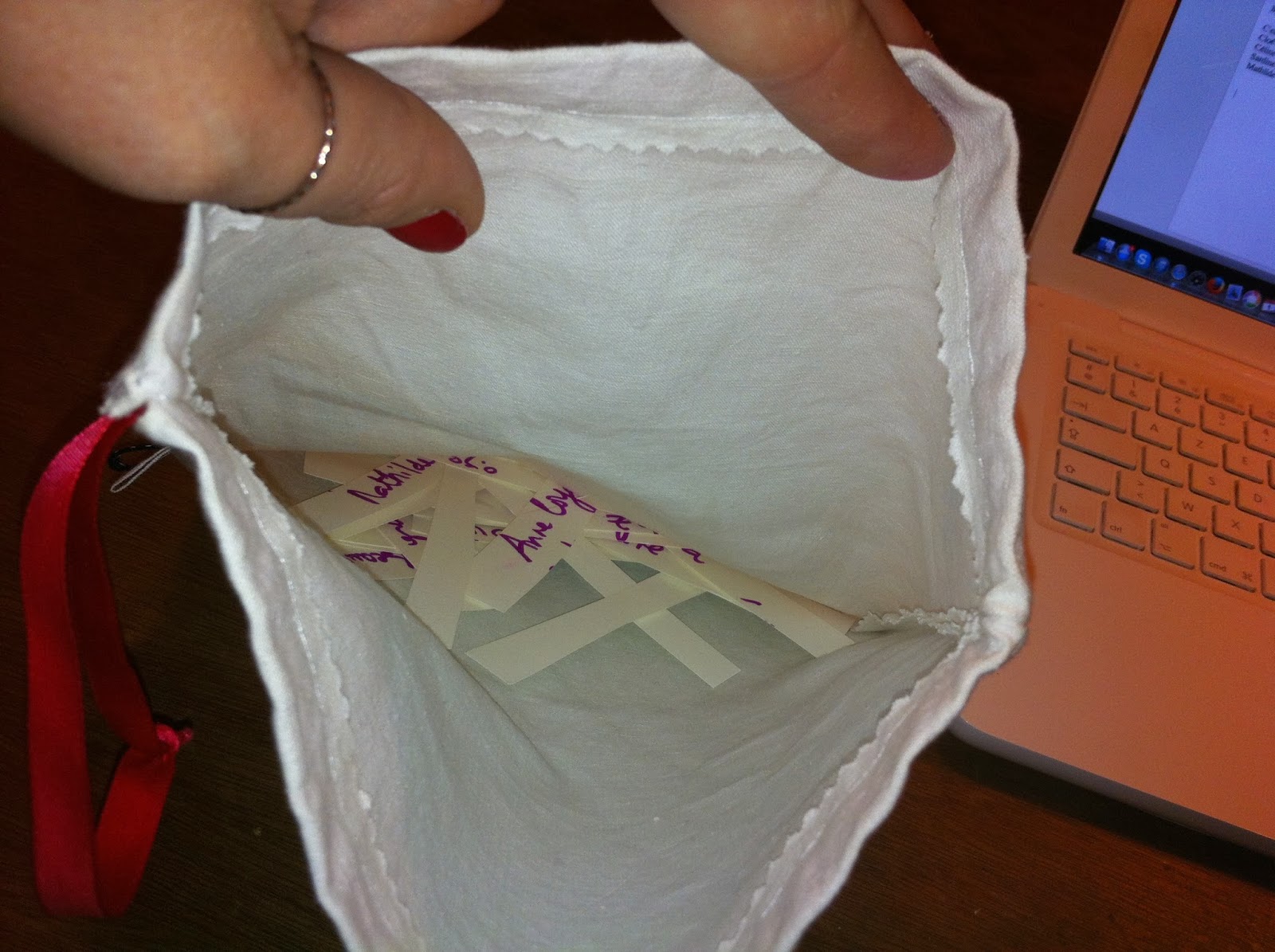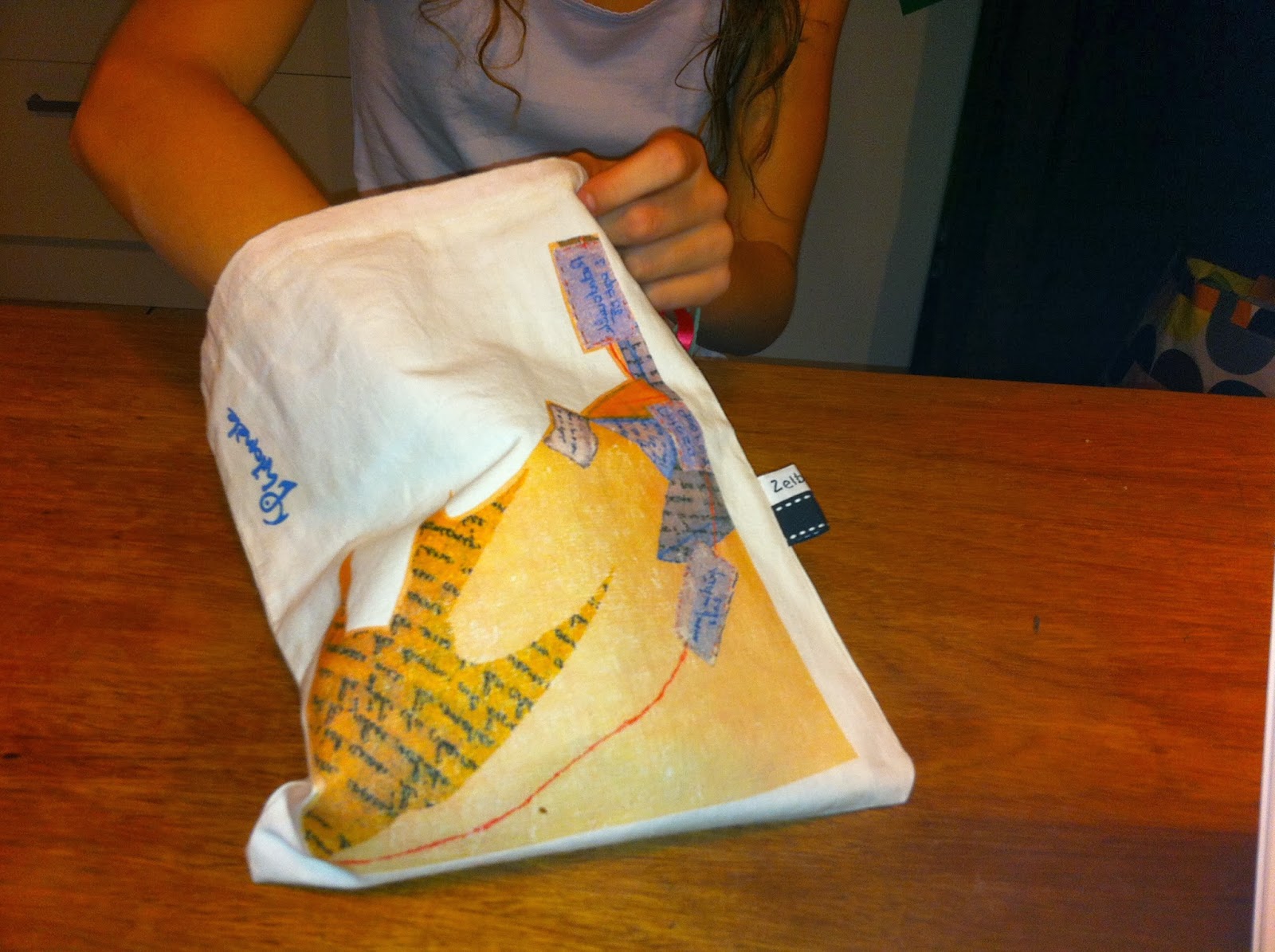 Voici les photos du tirage au sort, avec les mains presqu'innocentes de ma Fantine et le super joli sac imaginé par Isabelle des éditions Philomèle à partir de mon livre La Grande Collection.