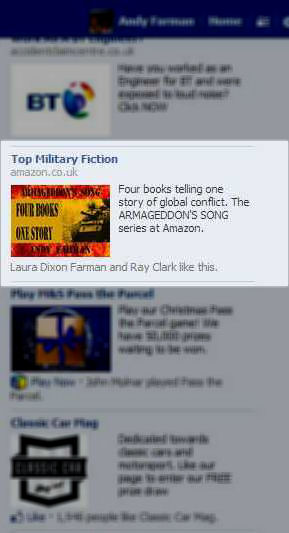 As I have previously stated, if you advertise with FB you should only target your book page, be it Amazon or whoever you use. You can use this to get 'Likes' for your FB page like some attention hungry teenager, but as an author you will go hungry, literally. 'Likes' do not pay the bills.