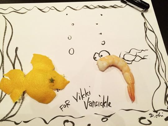 Recently, for example, Vikki challenged me to do one of my Found Art doodles while AT the Torkidlit holiday party: