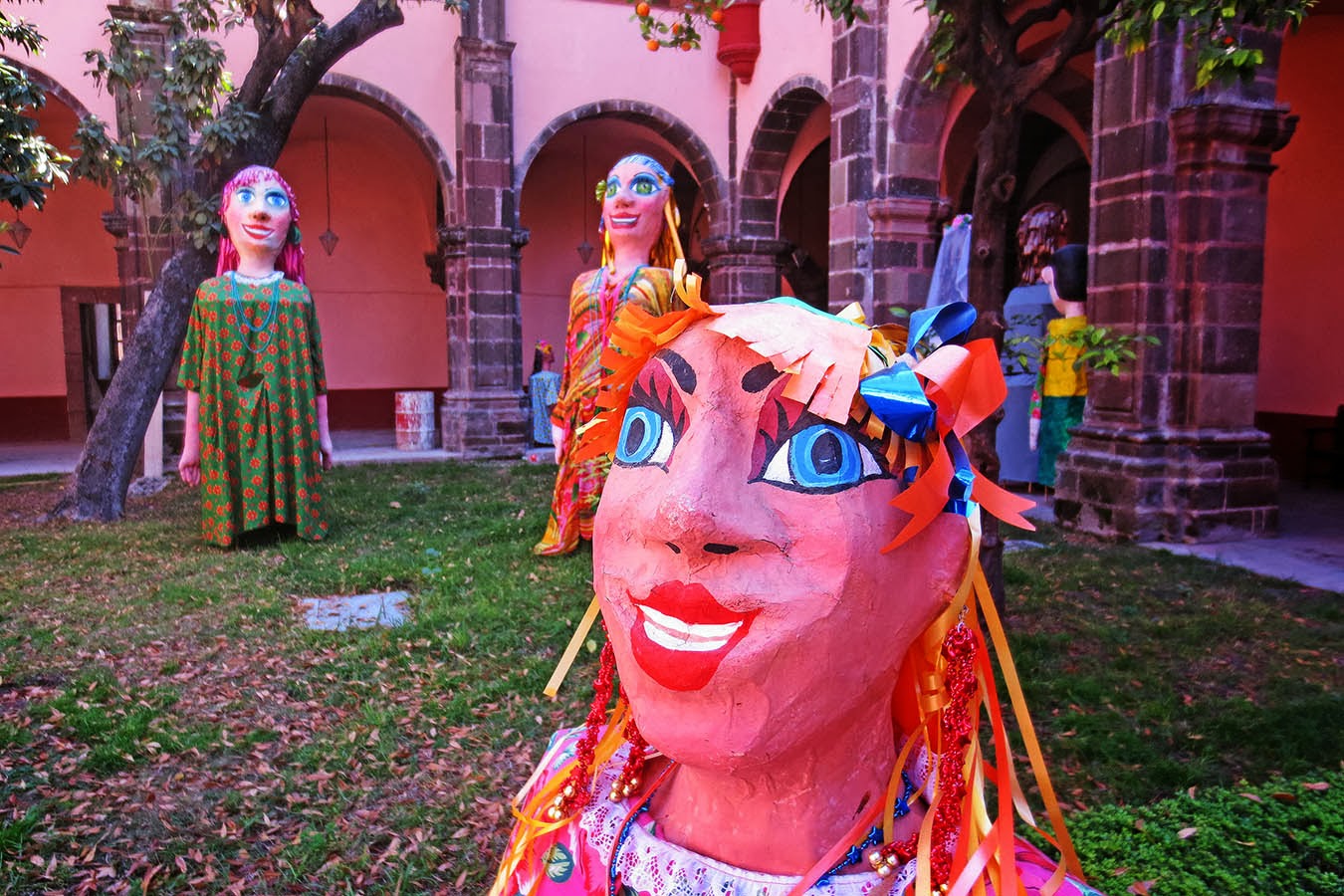 Lonely Cloud Mojigangas are the giant dancing puppets that add festive energy to celebrations. Tradition dates these figures of cardboard, paper and cloth to the 1600's when they were brought by Spaniards to San Miguel de Allende. During religious pilgrimages they were designed to evoke joy and were crafted as effigies of saints and kings. Over time Mexican artisans fashioned them satirically to poke fun at public figures. Local craftsman use materials available to them and making a puppet involves creating the frame of the body in the same "castillo" style of making fireworks. The head is like a piñata and the hands are often sewn or made from paper maché. The sewing of the costumes, painting of the faces and adding of embellishment breathes personality into these larger than life puppets. There is nothing quite like seeing these lively figures dance and I filmed this last night in the zocalo.