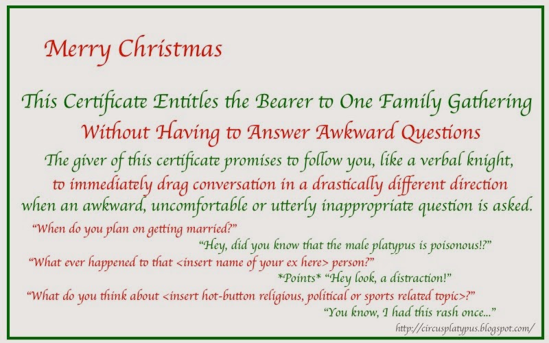It's ok, I've got your back. Today I provide, free of charge, some of the best Christmas gifts that you can give anyone. Even that super-hard to shop for person, who claims all they want is "world peace" but really wants you to read their mind, can be placated with these little certificates.