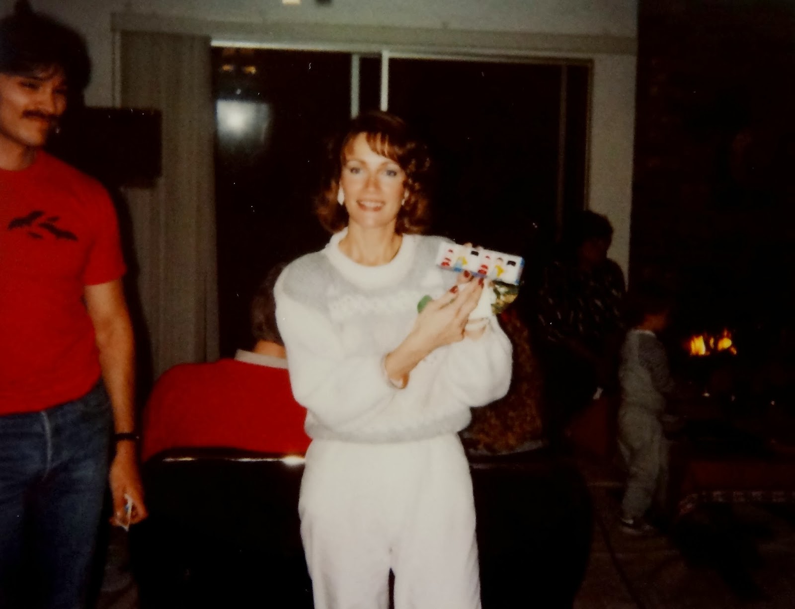 PHOTO: Mom, wearing that blouse that I like so much. I still have the blouse as a keepsake of remembrance.My Christmas Party is set for December 19, 1987. I wonder who will attend. Mom is being a great help in the preparation of food, festivities and holiday décor. We went to WALGREENS at South Shore Center to shop for thirty or so gifts for the guests that are the first to arrive. I don’t really expect more than thirty guests (even if I did invite about fifty). It will be nice for everyone to leave with a gift (candy canes, a paperback book, a bottle of wine, butter cookies, BRUT cologne, an ornament, a journal/diary, a Playgirl magazine, a GQ magazine, a mini-model sports car—after all, I couldn’t afford to gift a real sports car).