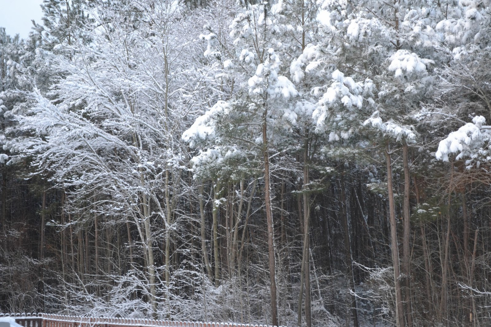 We got our first real snow of the season (I call this "real" snow because we got more than an inch). I love it when the snow clings to the trees like this. So pretty! I'm not much of a cold weather gal so I'm enjoying all this lovely white stuff from the comfort of my nice warm home. I did venture outside earlier in it after my son