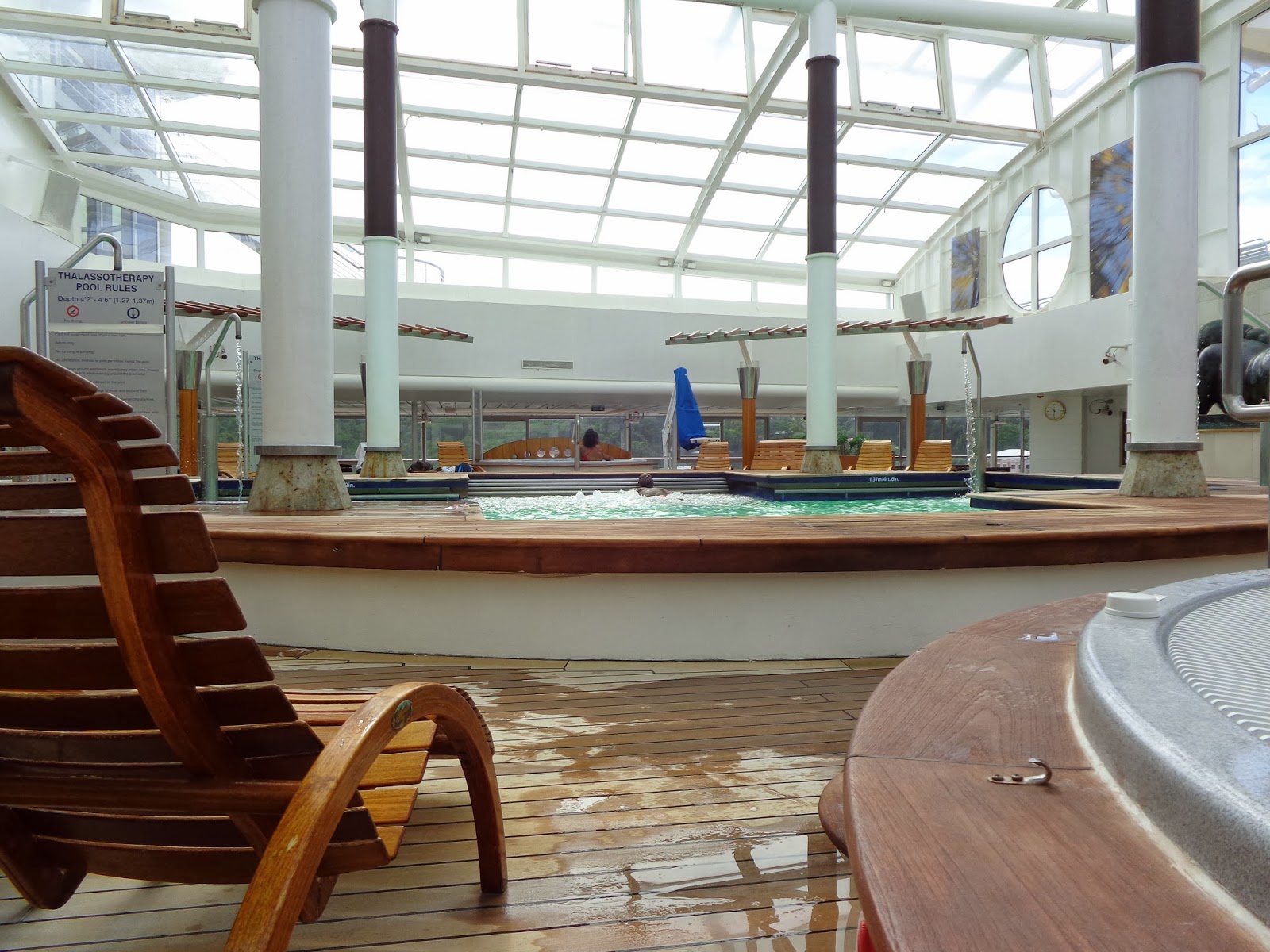 Hubby on the Veranda Hubby's favorite area of the ship was the spa. We were in aqua class cabins which gave us unlimited access to the Persian Gardens spa area where there were saunas, steam rooms, heated loungers. Hubby took advantage of salon and got a pedicure on the first day. I had a hot stone massage and facial.