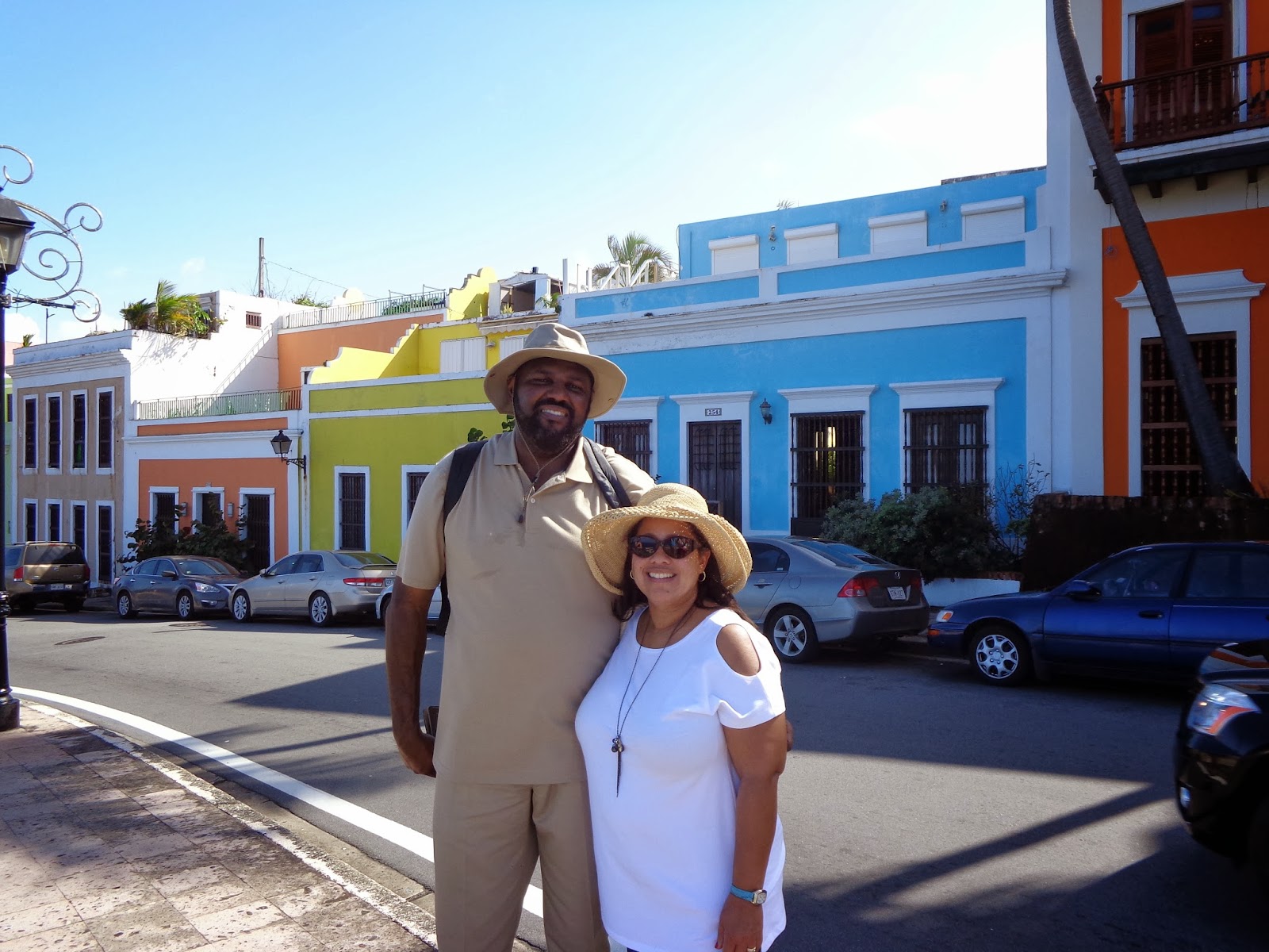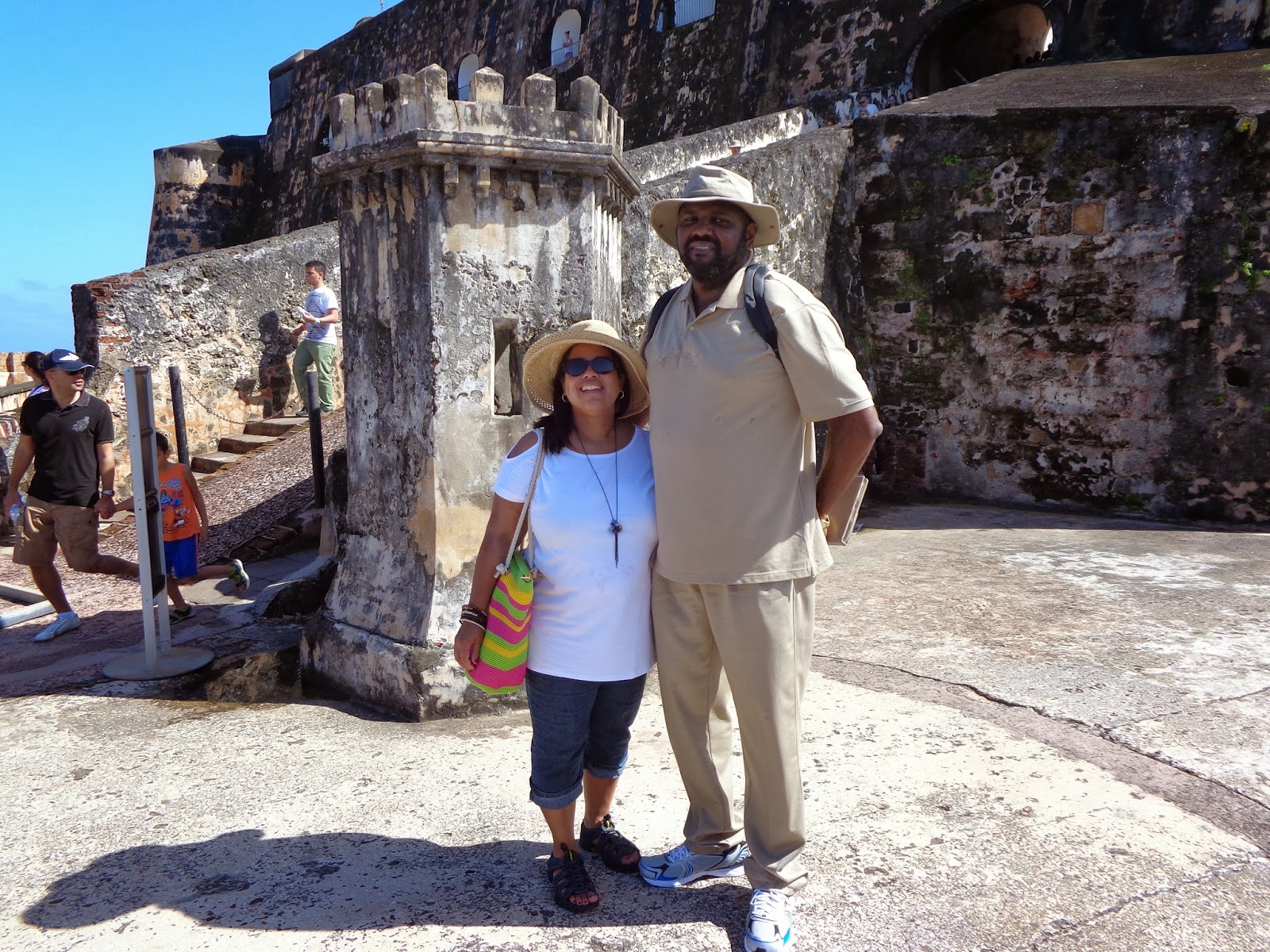 Here we are walking towards the other Fort. I loved the colorful architecture.The ship was scheduled to depart on Saturday, December 28th. We booked two nights at the Sheraton so that we could check in early. Which was a blessing because we arrived at 7:00 a.m. We checked in and went straight to bed. After a short nap, we got up at around 10 a.m and went on the walk around Old San Juan and took the pictures above.