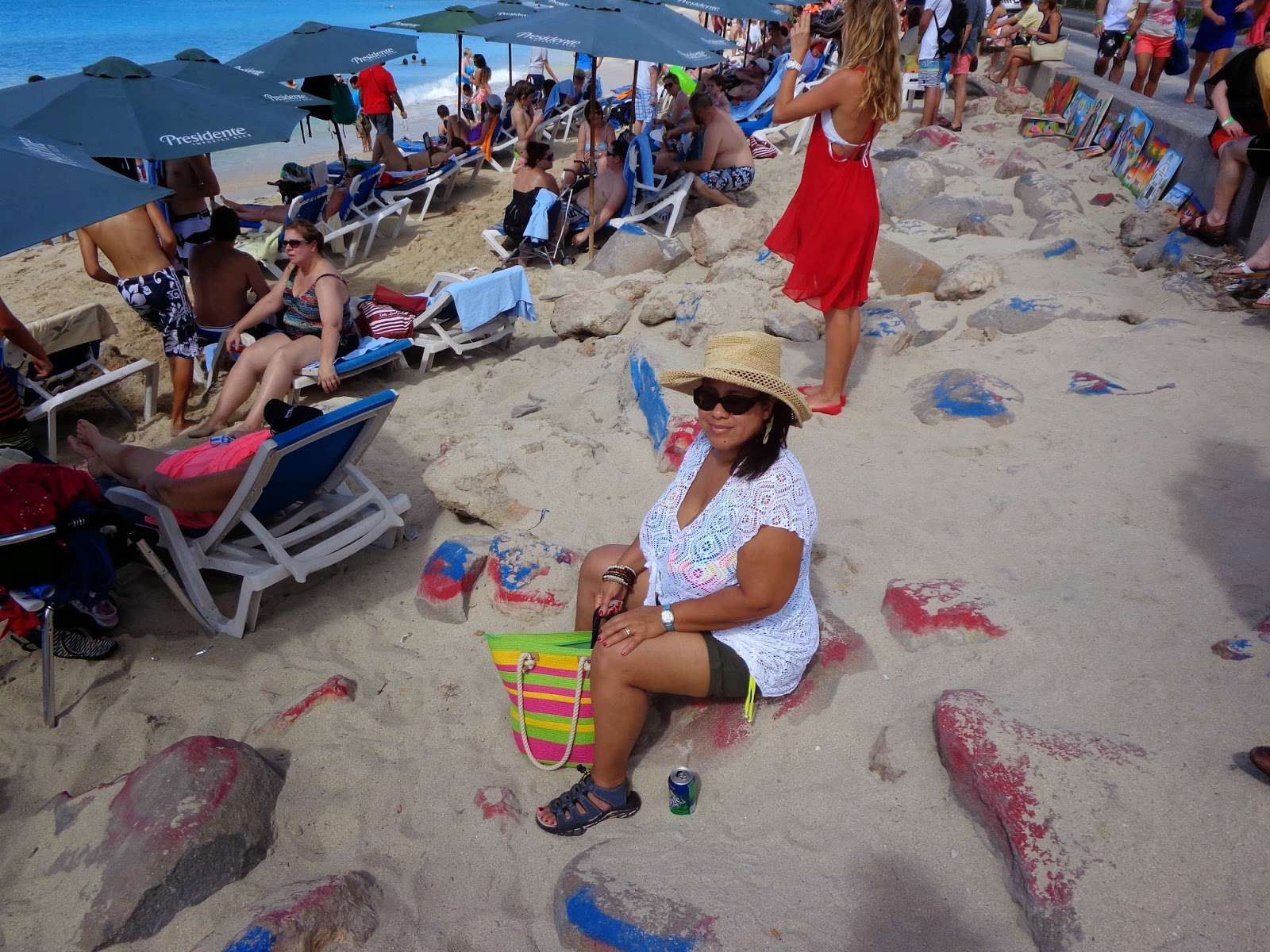 Hubby with a bucket of beers at the beach in St. Maarten. Finally decided to take his shoes off. Next post, I will describe the food and entertainment.