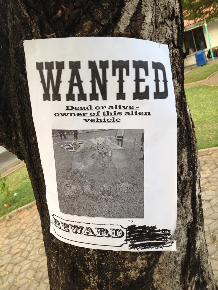 Therefore, I enthusiastically encourage schools in America (and everywhere else, of course) to consider crashing a UFO on your grounds. Tie it into your own Writing Week.