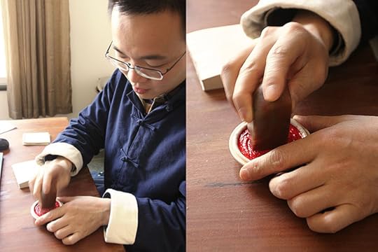 There is an art to using a stamp properly, and I’ve definitely been doing it wrong. So Chen Qi’s son Chen Jiahe showed me how…