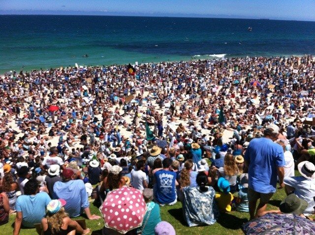 Shark cull protest, Cottesloe Beach, 1 February 2014