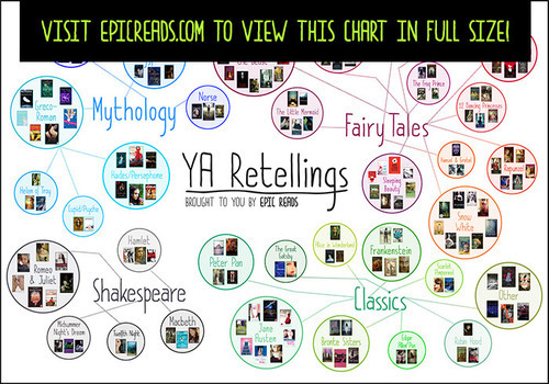 YA RETELLINGS - An epic chart of 162 YA retellings brought to you by EpicReads.com! CLICK HERE TO VIEW IT IN ALL ITS GLORY!
