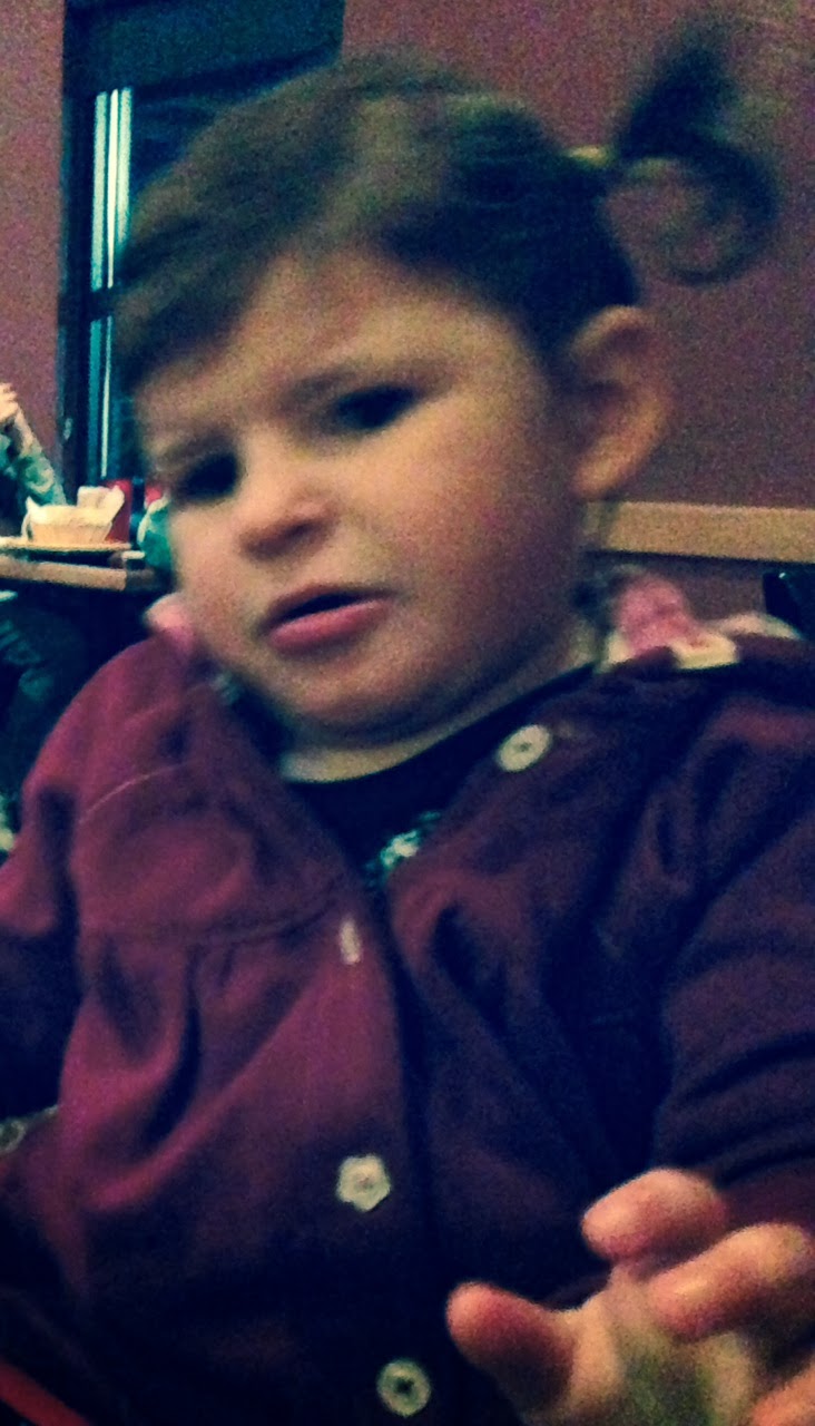 But I love this Tess, the one we have. These are the truths, and they are welcome ones: she is a typical four-year-old, because she got mad when she couldn't have the pizza we were all eating, she didn't like the lighting or the noise and wanted to leave, and once we were home she was happy again.