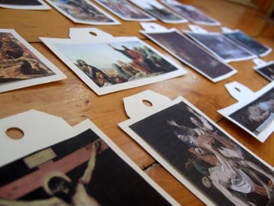 2. Cut out and mount the classic paintings of the masters, to hang as ornaments {consider writing the number of the day’s devotional on the back of the ornament}