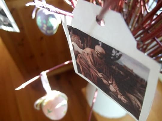 3. Perhaps hang decorative eggs from the branches, symbolic of new life in Christ…. that out of His sacrificial death on the tree, comes new life found only in Christ