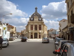 The first image I am showing next is a residential area of Souk Ahras (Thagasta) today, taken from Google Maps. That city, today, has a population of 157,000 people, and it has all sorts of very impressive structures and lots of cars, but here we see, polka-dotting the area, the white of many, many satellite dishes. The second image is of a more urban view. Some things remain the same; others change…