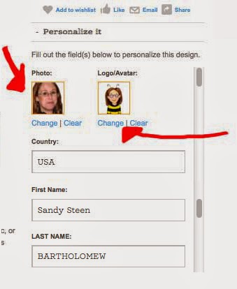 3. You can do the same with the "Logo/Avatar" image right now, or wait until later. This image will be tiny, but can be an additional photo or logo or cartoon or tangle or QR code... it will appear on the back in the "About Me..." section.