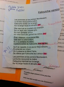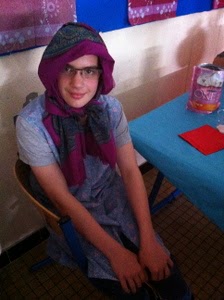 Et enfin au collège Sourdy, les 5ème de Mme Bohuon (avec la documentaliste !) m'ont fait la surprise du siècle. Ils avaient lu, aimé (adoré) Noël en juillet (premier tome de Roulette russe), redécoré leur salle de classe transformée pour l'occasion en restaurant Al Capone. Ils s'étaient déguisés, avaient réuni plein de matériel. Il y avait à manger et à boire !Un bar, de la (fausse) vodka, des truands qui jouent au poker, tous les personnages du roman, un spectacle de chansons et de danses russes, un numéro de ventriloque et ... comment dire ? beaucoup d'émotion. Beaucoup de rires. Tout ce que j'aime.