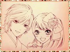 ツイッターのほうにもアップしたんですが、オジョメ最終巻の、カバーめくったとこ用に描きおろしたイラスト、の、線画。