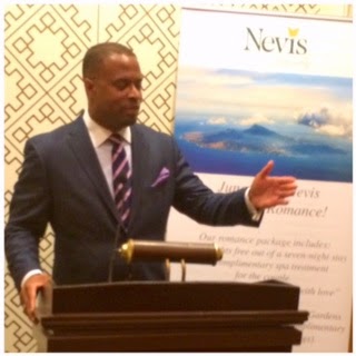 Last night I attended a reception with Deputy Premier the Hon Mark Brantley from Nevis, West Indies. I was impressed with him and what he had to say about his Island. He has charisma to the tenth power! Check him out on Facebook Here!An Oxford University trained attorney, he is the Minster of Tourism and the Minster of Health. He had me hooked the moment he walked into the reception all dapper and wearing Prada glasses no less. You know I love a well dressed man. LOL Most importantly, he was charismatic, warm, approachable, funny, and had lots to say. He had our full attention the moment he stepped up to the podium.