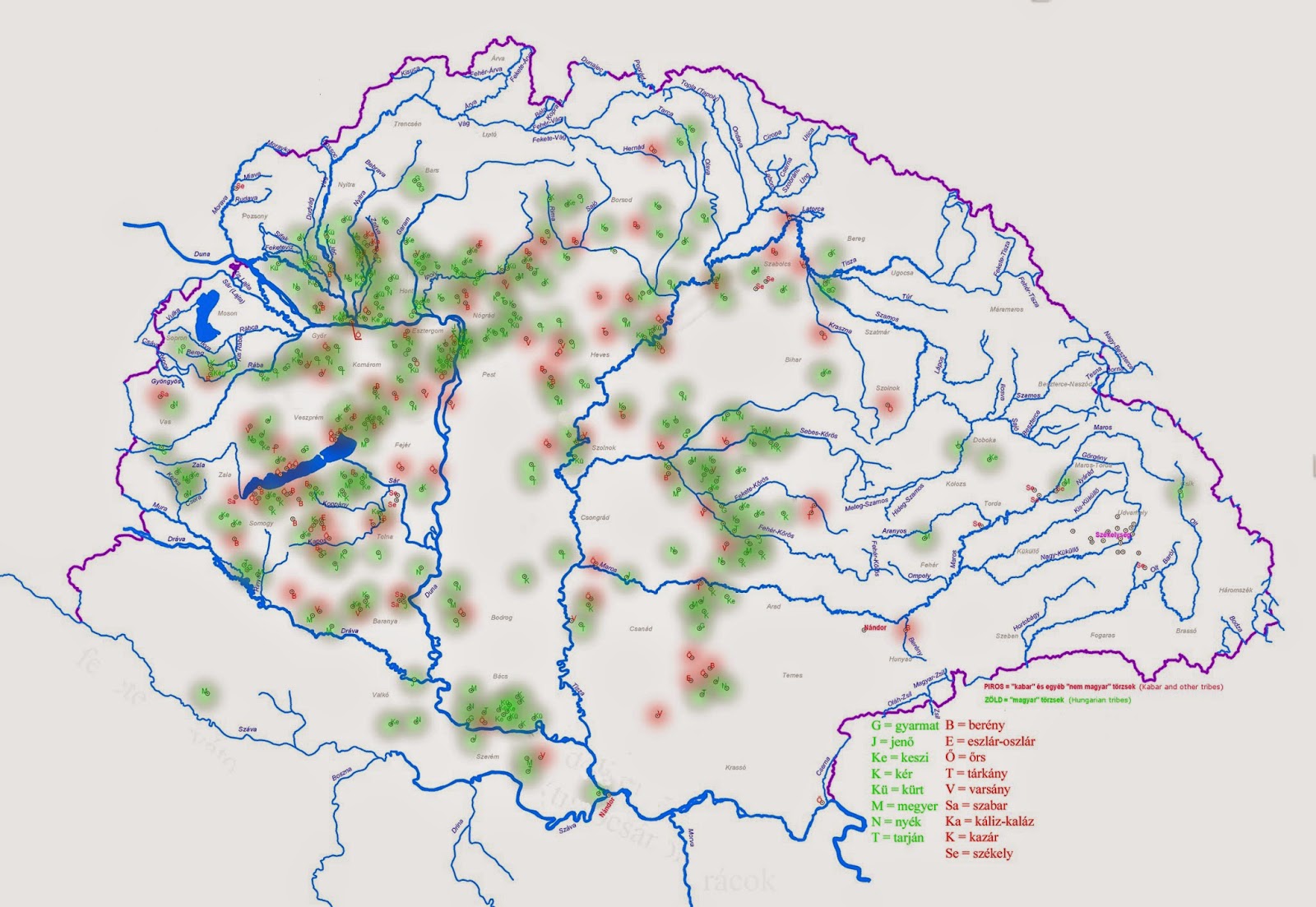 The Magyars. Let me sort out the name first. The word  Magyar comes from Hungarian. In other languages Hungarian has a Turkic etymology, deriving from onogur, which simply means ten tribes; others talk of ten arrows. The O got changed into a U; in German the word is Ungar to this day. The leading H first appears in Medieval Latin. As for the Hungarians own name for themselves, it appears to have at one time been the name of a leading family spelled Megyer.