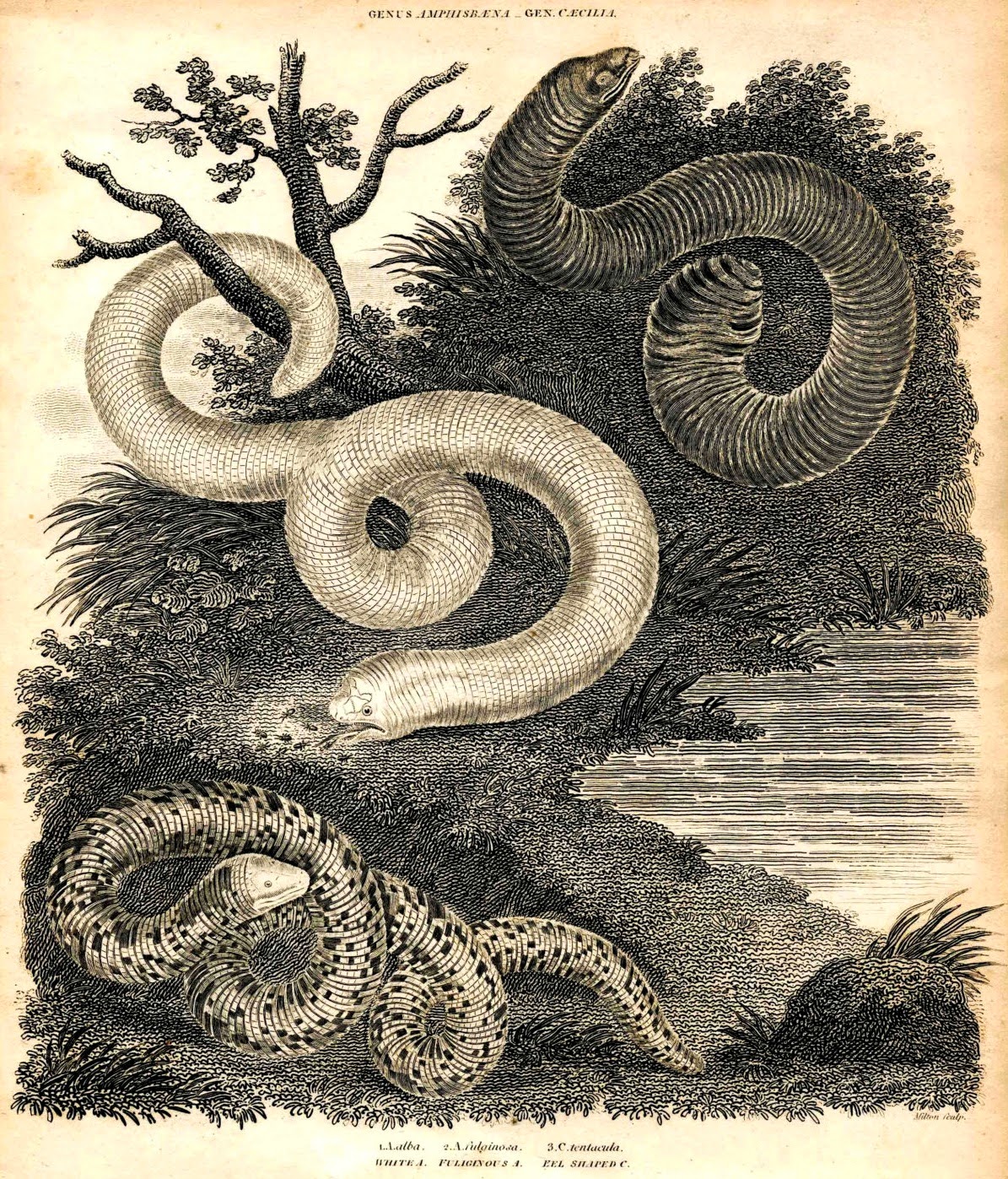 st1\:*{behavior:url(#ieooui) } Amphisbaenians and a tentacled caecilian illustrated in an engraving from 1811 – could the exploding 'worm' of Kalmykia be allied to one of these limbless herpetological forms?
