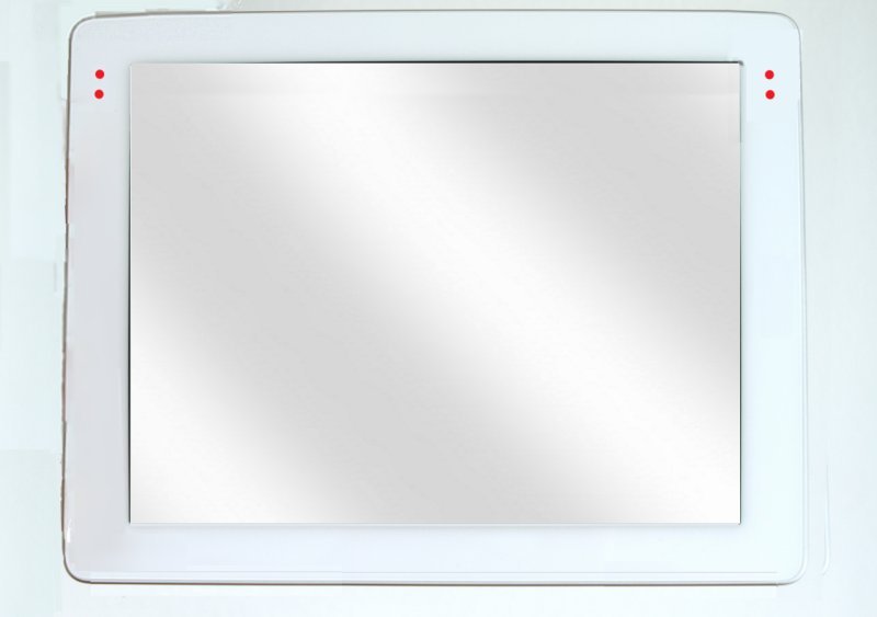 The Essessoni computer can also set the background to opaque which lets it display full color images and icons and then it looks even more like an iPad. And like the iPad it is a fully functional touchscreen. However, there are times you need a keyboard. Unlike the iPad, it comes with a built-in projected keyboard which are produced by the two red dots in the upper corners. More on that tomorrow.