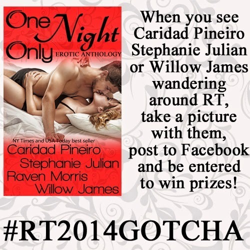 Are you going to RT in New Orleans next week?While you're enjoying the conference, be on the lookout for Caridad Pineiro, Willow James/Sara Humphreys and me, Stephanie Julian. We're playing a cut-throat game of who-can-get-the-most-pix-with-readers.