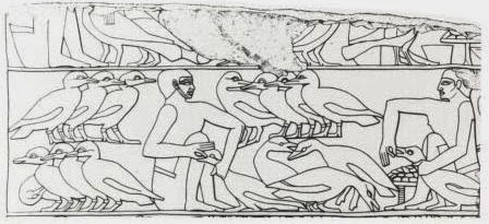 Lest it be thought that this practice —and the enjoyment of foie gras—was exclusively a product of Christendom, I reproduce here the illustration that Wikipedia uses from an ancient Egyptian bas relief ( link ). The image is quite realistic—for a piece of art that somewhat suppresses what really took place. As I remember it, the woman who did the stuffing used one hand to force the beaks apart while using her other hand’s index and middle fingers to reach deep into the poor bird’s gullet.