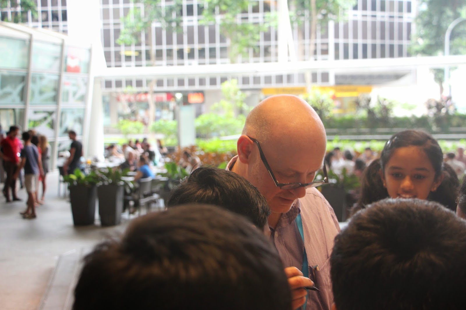 After browsing around the mediamart, the area where various vendors like Samsung and this year's festival country of focus: India have pavilions set up, I joined author James Mayhew for a drink at the nearby Hanis cafe.