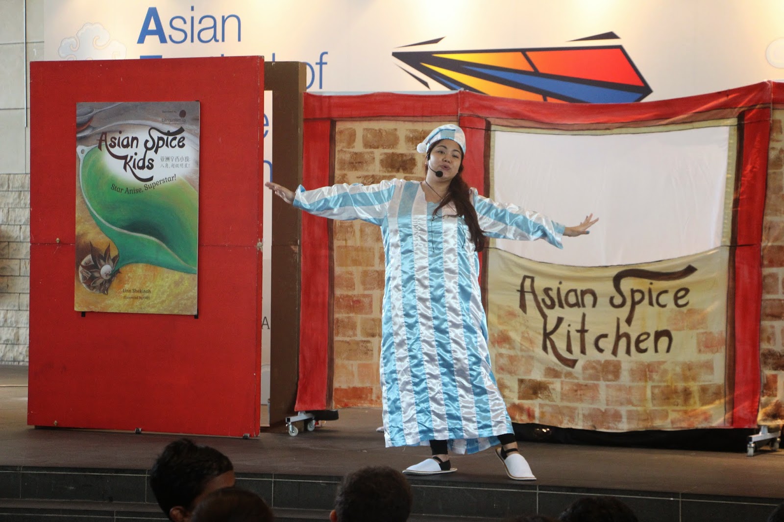 Once again, like last year, The Learning Connection was staging a local children's story, Shekinah Linn's Spice Kids: Star Anise. A group of children sat enthralled as the performers brought Shekinah's story to life. Shekinah, no doubt, was really, really happy.