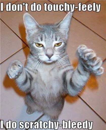 There was a cat in the hall. A huge furry mass with leering green eyes, and blood matting its gaping maw. When it padded towards him, it left red paw prints in its wake. Around its neck was a white collar covered in little pink hearts. The lights caught on the metal disc, highlighting the engraved “OJUC.”