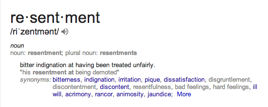 Source: GoogleResentment is strange idea, but it is such a destructive and consuming thing that it can have an outsized influence on the world we live in. I have felt resentment in my life, and I have made a more conscious effort to diffuse it when I sense it coming on. The unfortunate thing is that people are never taught about resentment and its destructive effects. What o...