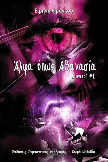 Άλφα όπως Αθανασία: Δυνατοί #1 / Ειρήνη Φράγκου. Θεσσαλονίκη: Συμπαντικές Διαδρομές, 2014Η Ειρήνη Φράγκου κάνει μια εντυπωσιακή εμφάνιση στον χώρο της λογοτεχνίας του φανταστικού με το μυθιστόρημα «Άλφα όπως Αθανασία».