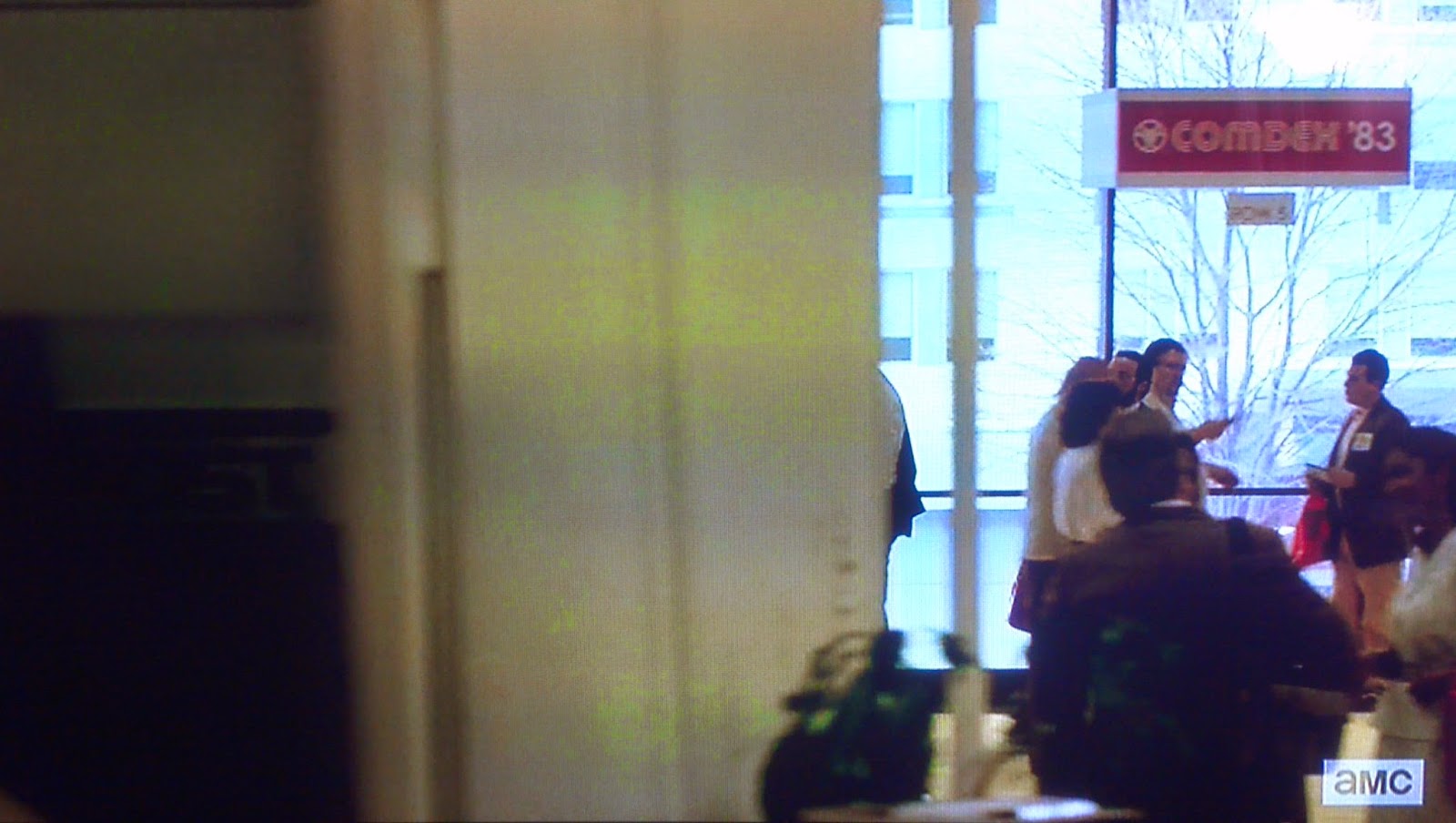Bobby and Cardiff Electric crewI was an extra on episode 9 of AMC's TV series, Halt And Catch Fire. Episode Nine takes place partly at the 1983 Comdex Convention in Las Vegas. The shoot took place in a couple of different location in Atlanta, GA a few months back, before the first episode had aired. It was either late February or early April. I do remember it was chilly outside when I arrived early each morning. My dates are a little fuzzy.I worked on the shoot for three days and had a fun time, although my feet were killing me at the end of each day after many hours standing and walking on hard surfaces. Oh, the pains of just being there, huh? :) I also spent some time fake drinking, fake smoking, and fake picking up women at the bar. I also had a lot of fake conversations on the con floor and got to fake flirt with the porn stars turned booth babes. Fun times. It was also my first time filming against a green screen, which was a neat experience. The shirt I wore was none to flattering, although it fit the era. It was a bit snug.