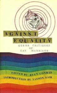 The Against Equality Collective has published their first book, Against Equality: Queer Critiques of Gay Marriage, which I edited. The book includes written work by some of today's foremost and emerging queer voices: Kate Bornstein, Eric Stanley, Dean Spade, Craig Willse, Kenyon Farrow, Kate Raphael, Deeg, John D'Emilio, Ryan Conrad, Yasmin Nair, Martha Jane Kaufman, Katie Miles, and Mattilda Bernstein Sycamore. The book also includes a set of postcards from our series designed by Beth Slutzky, Liz Kinnamon and Chris Vargas (who also designed our book's fabulous cover). Since the book's release in mid-September it has shipped to four continents (north america, europe, africa and australia) and has nearly gone out of print!
