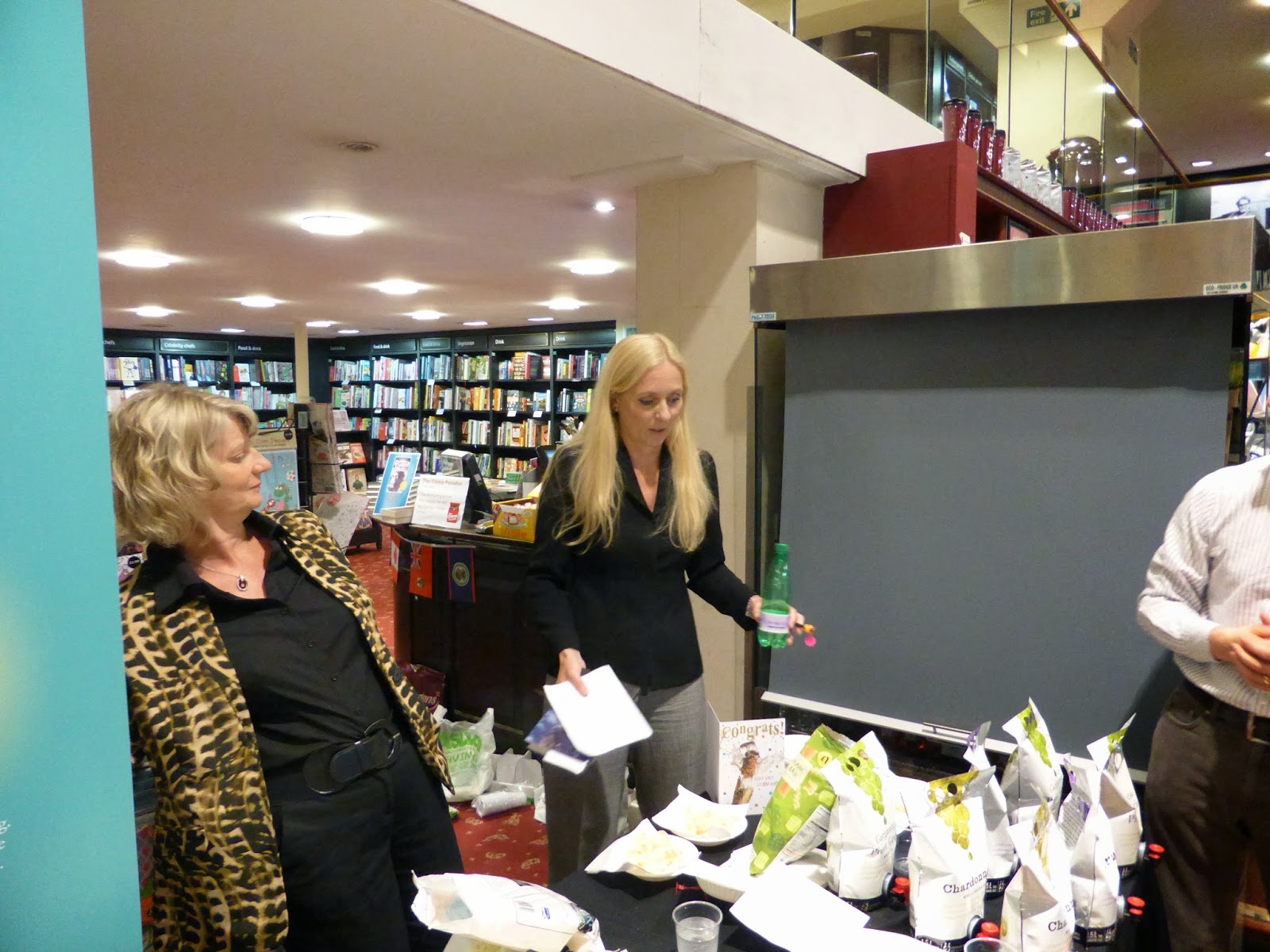 Friday the 31st was the launch of the new book. Fraught with difficulty due to Commonwealth Cycling Road Race and sweating men in Lycra. Traffic chaos, no parking etc. The hotel we normally go to post launch had trebled its prices and the Waterstones' staff could not get home. So we stayed in store to have a drink and a nibble.