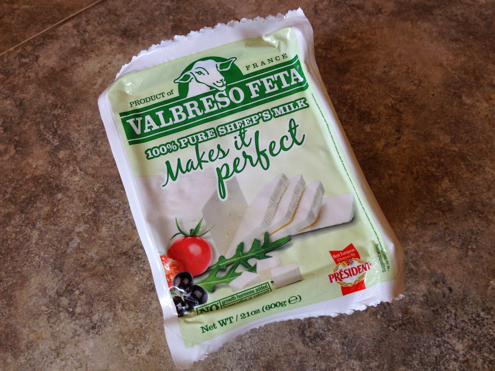 I only eat non-cow dairy. Although feta cheese is traditionally made with sheep's milk and maybe some goat's milk, you can find lots of feta now made from cow's milk... tsk tsk. Check when you order something with feta cheese at a restaurant. It might not be what you think.I love the Valbreso Feta at Costco imported from France (pictured left). I cut it up into slabs and freeze each one. I don't eat enough to use the whole brick before it turns too soft to crumble. If you're looking for real feta, don't buy the large container of feta next to the Valbreso at Costco, it's cow's milk.